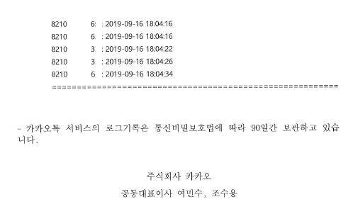 그런데 주식회사 카카오는 형사사건에 대해서만 메시지 내용을 제공할 뿐 민사소송에는 <메시지 내용은 제공하지 않고> 수발신내역만 제공한다(과거 민사소송에도 특정 당사자 사이 메시지내용을 제공했지만 관련법 개정으로 현재는 합법적으로 거부하고 있다).